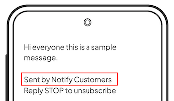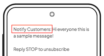When you create your Notify account, by default we add a sender name identifier at the END of your text message. Here's what it looks like: